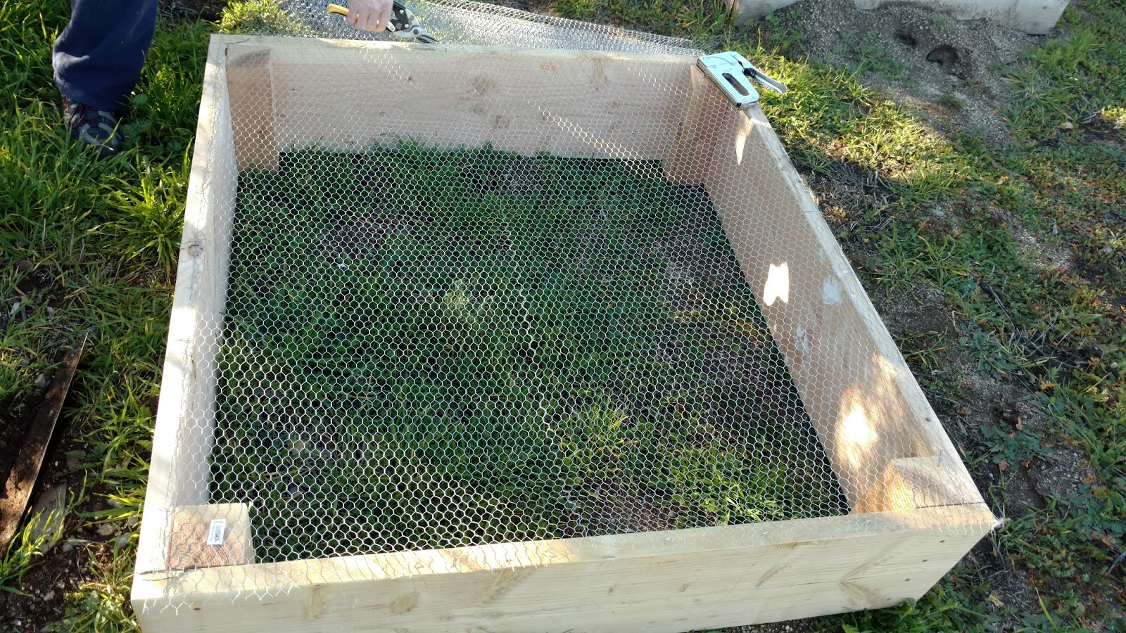 If you have gophers or other burrowing pests, I highly recommend gopher wire or hardware cloth (it's not actually cloth). Affix the wire to the bottom of the bed after you build the bed but before you fill with dirt