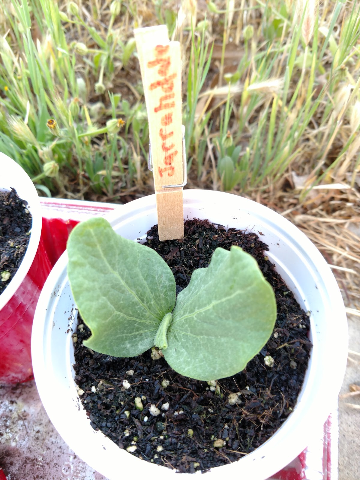 Jarrhadale Pumpkin Seedlings happily growing outside