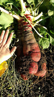 Last year we even grew a German Giant Radish that was over 12 inches long. Again, we let it "bolt" and produce seeds but I wasn't expecting it to be so large.