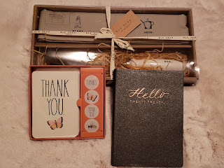 and assorted gift item: Ray Dunn garden tool & half apron, Thank You note cards and a 2020 Journal
