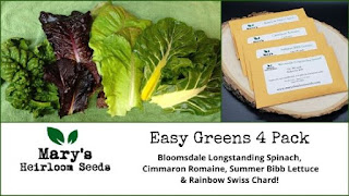 Easy Greens 4 Pack – One package each of Bloomsdale Longstanding Spinach, Cimmaron Romain, Summer Bibb Lettuce, and Rainbow Chard! Retail value of $6.50