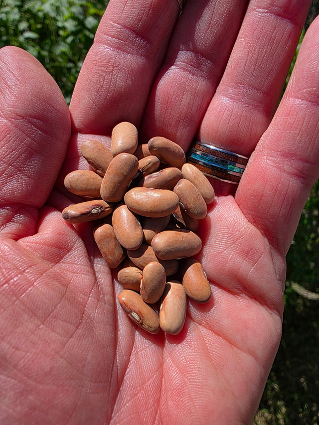 Yellow-tan seeds with red-brown eye rings. Excellent for use as a baking bean. Prolific plants, good drought tolerance.