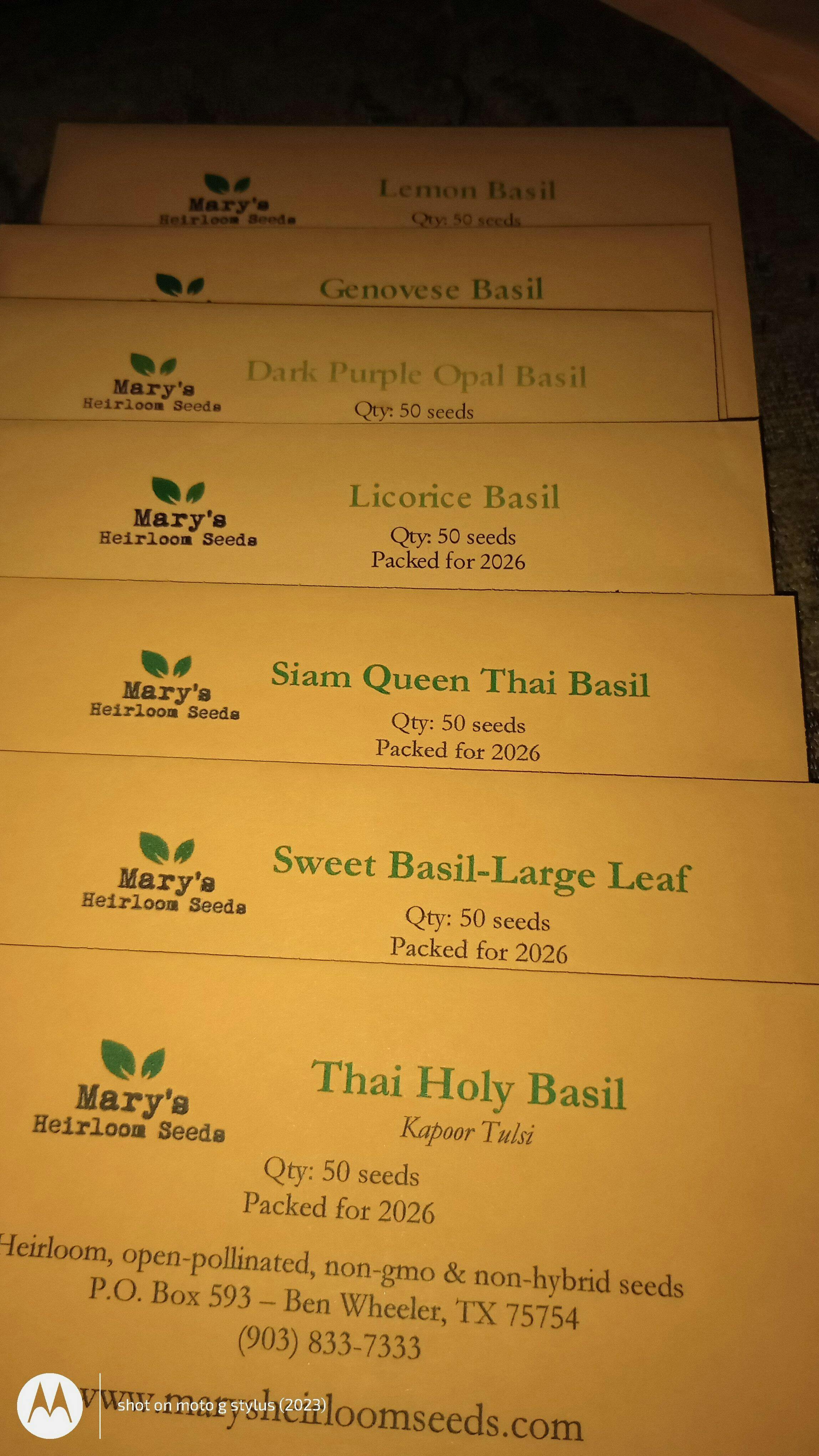 Mary's Basil Seed Collection