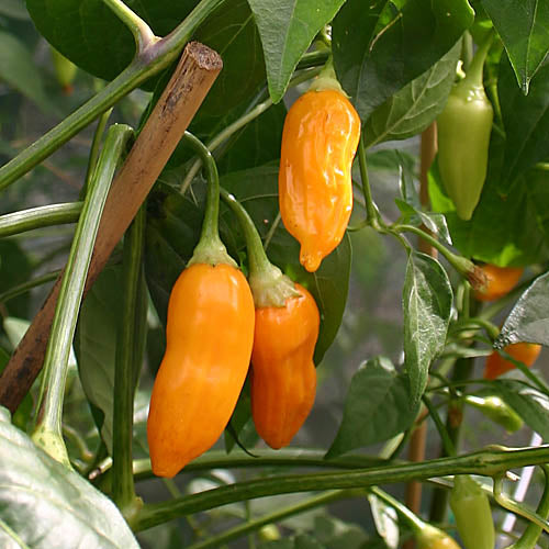 Unlike the Habanero, the Aji Habanero is quite mild, with minimal heat. The flavor has the delicious smoky spiciness that Habanero's are famous for. The bright peppers ripen to an orange-yellow with slight wrinkles.