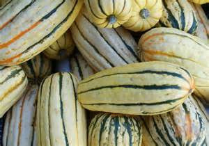100 days. Introduced in 1890s. Delicious, creamy sweet potato like taste. Delicata has a fine grained, light orange flesh steamed or baked.