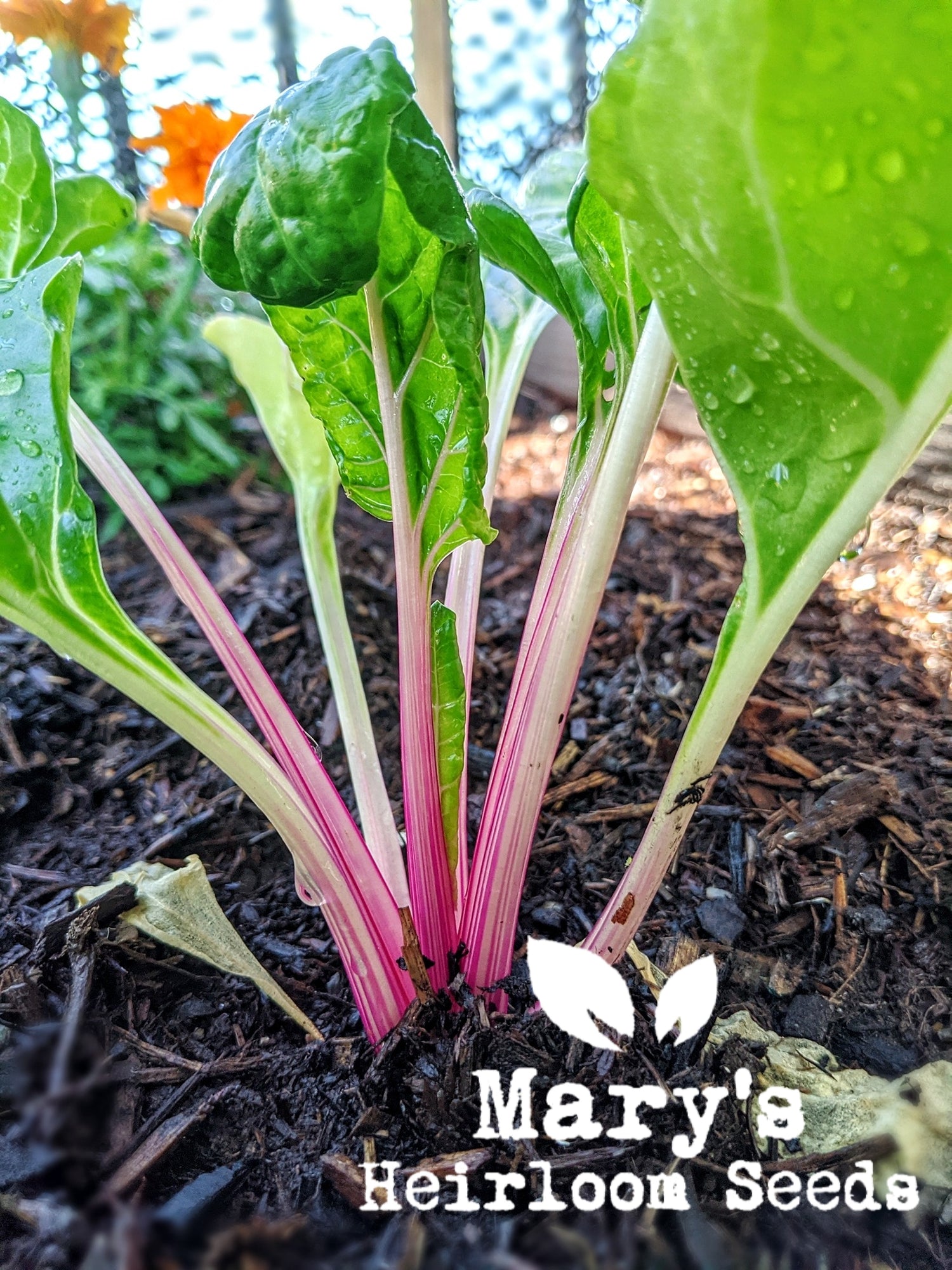 This chard originated in Australia. A beautiful chard; its colors are brilliant (pink, yellow, orange, red and white).