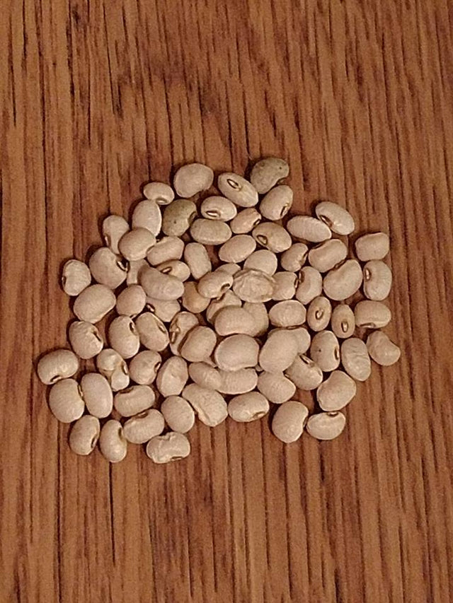 65 days — The plants are upright with white flowers and pods set well above the dark green foliage making them easy to pick. The pods are six to eight inches long, medium sized, slightly curved, prolific, and green in color at the fresh shelly stage (about 65 days) and a dark straw color at the dry stage. The seeds are small, kidney-shaped, and white with an orange eye.